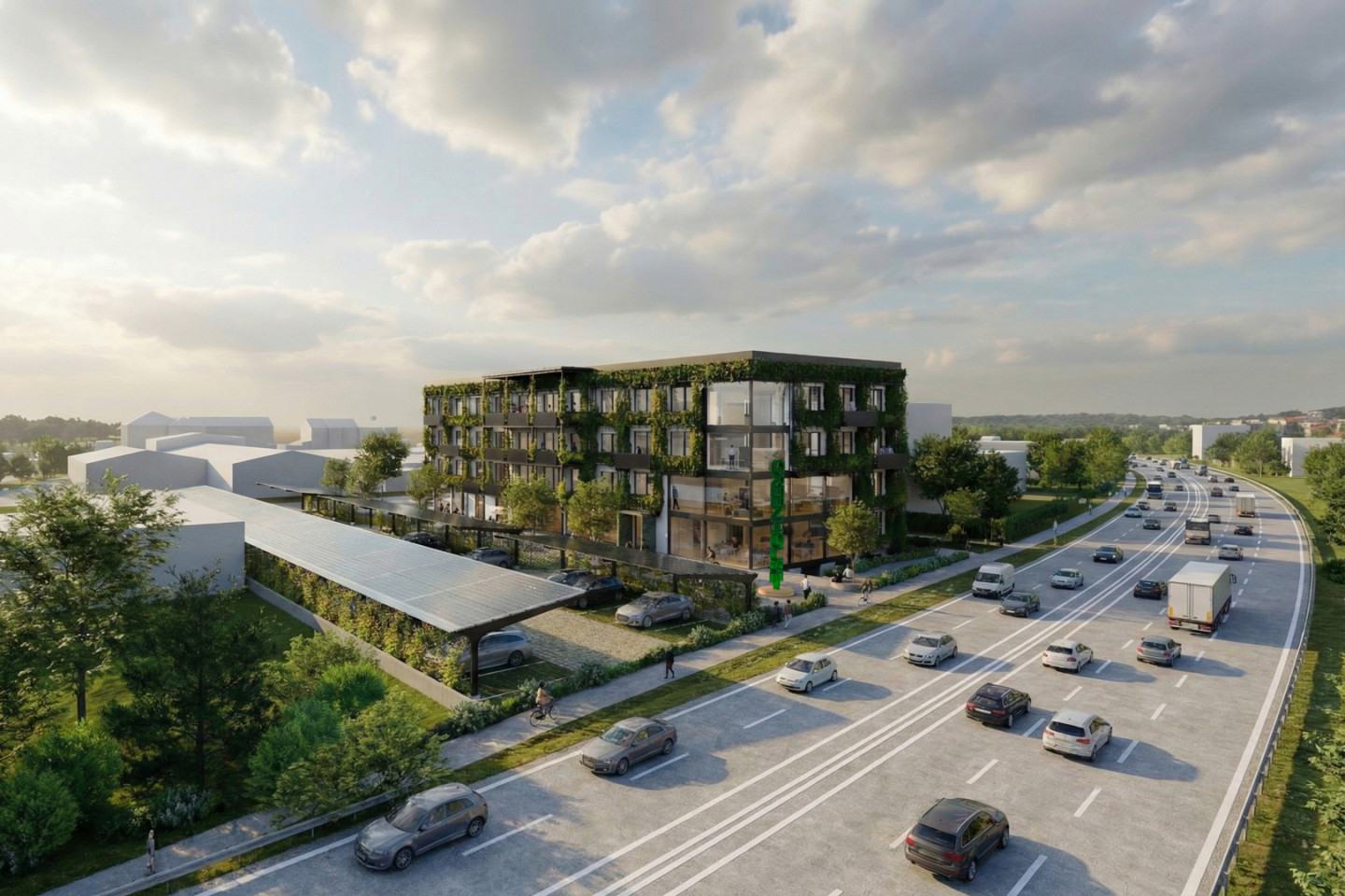 In Senden entsteht mit dem Greenhouse eines der innovativsten und nachhaltigsten Bürogebäude Deutschlands. In prominenter Lage wird eine Bestandsimmobilie durch moderne Technik zu einem nahezu energieautarken Gebäude mit optimalen Arbeitsbedingungen und einer ökologisch wie optisch wegweisenden begrünten Fassade.