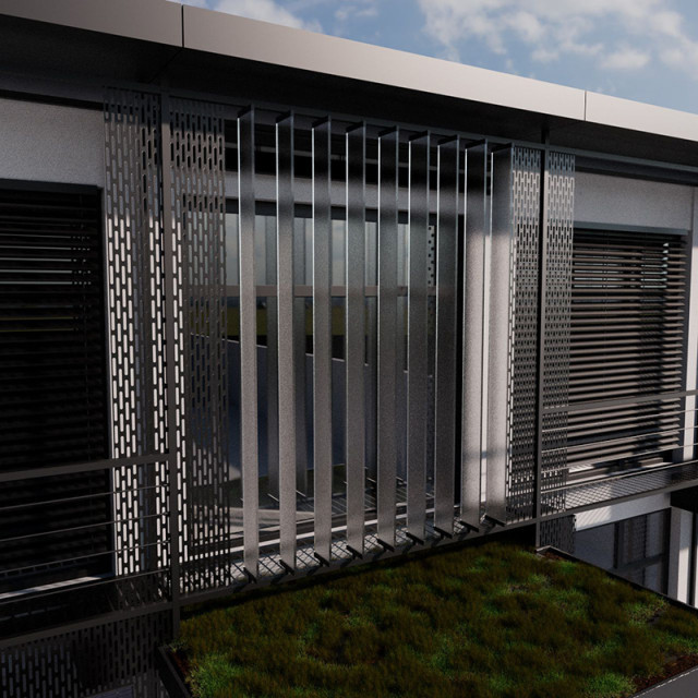 Ein zentraler Bestandteil des Greenhouse Senden ist die innovative, begrünte Fassade von EXOSHELL, die speziell für dieses Projekt von ausgewiesenen Spezialist:innen aus Fassadenbegrünung, Metallbau und Bewässerungstechnik entwickelt wurde. Auf einer externen Trägerkonstruktion wachsen verschiedene Pflanzenarten – unabhängig von der Gebäudehülle und optimal versorgt durch ein automatisiertes Bewässerungssystem mit Regenwassernutzung. Gleichzeitig erweitert die Konstruktion die Fläche des Bestandsgebäudes effizient um Freisitze und Balkone zu erweitern.